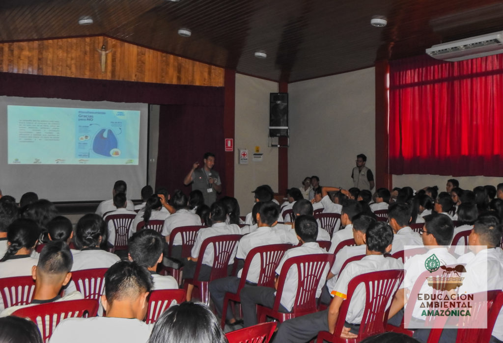 Desarrollo de charlas ambientales en instituciones educativas de la ciudad de Iquitos, presentando alternativas para las buenas prácticas ambientales y acciones a favor del medio ambiente.